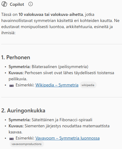 - Pyydä tekoälyltä ideoita jonkun asian opettamiseen tai projektiin. Tarkenna mainitsemalla esim. askartelu, iPad, laskin, vesivärit tai valokuvaaminen.