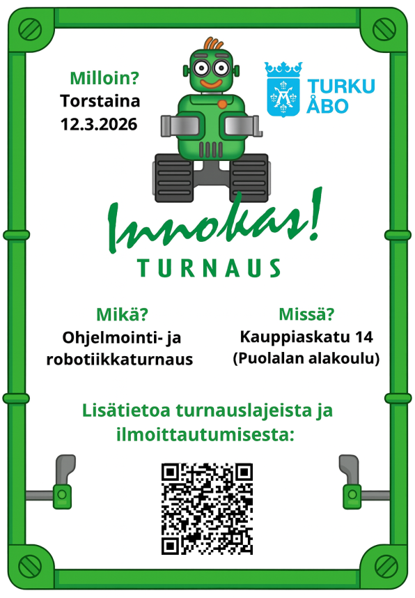 - Lisätietoa turnauksesta: Alueellinen Innokas-koordinaattori Toni Kössi, Puolalan koulu (etunimi.sukunimi@edu.turku.fi)